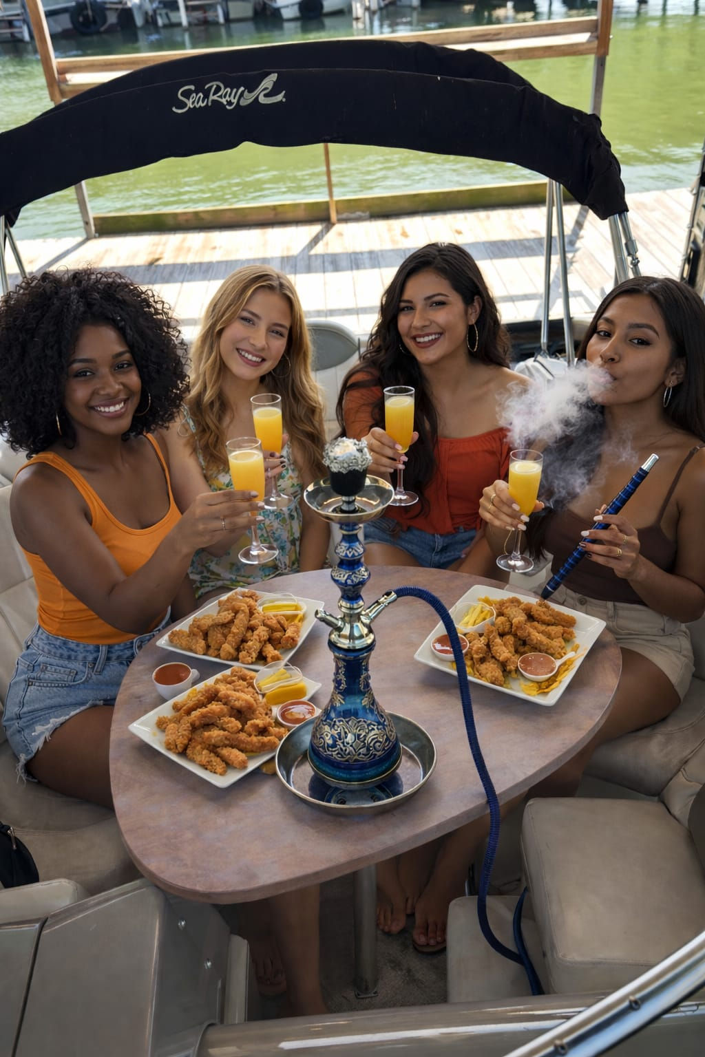 Sip mimosas, small bites and flavorful hookahs cruising the scenic waters of Joe Pool Lake.